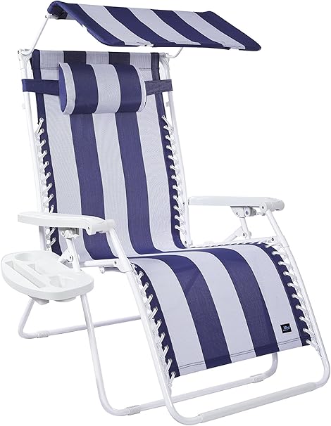 Amazon Com Bliss Hammocks Zero Gravity Chair With Canopy And Side Tray Blue White Striped 33 Wide Garden Outdoor